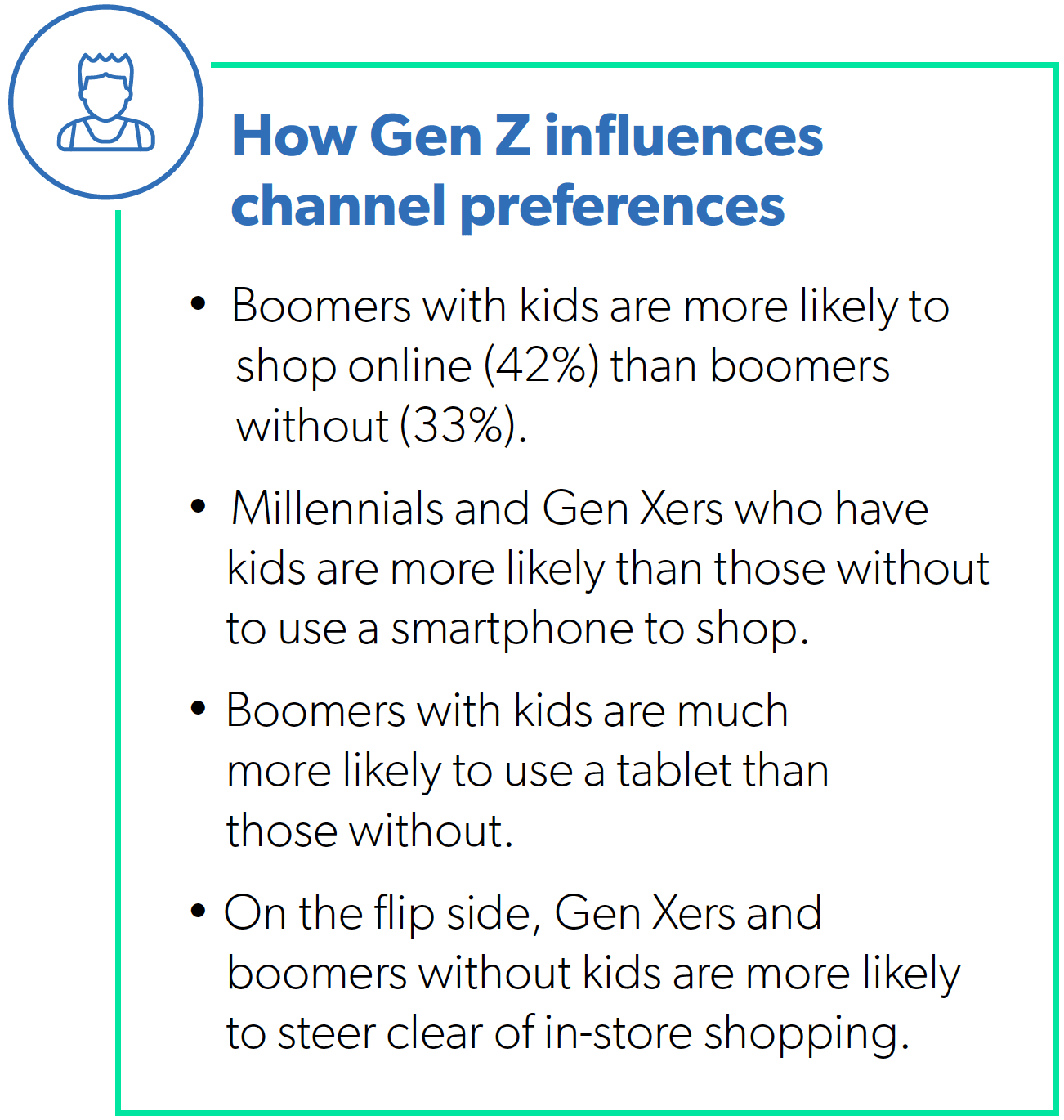 Here are two findings from the research to outline the influence Gen Z has around technology behaviors and channel preferences. Check out the full report for more on how Gen Z influences social media use and loyalty.