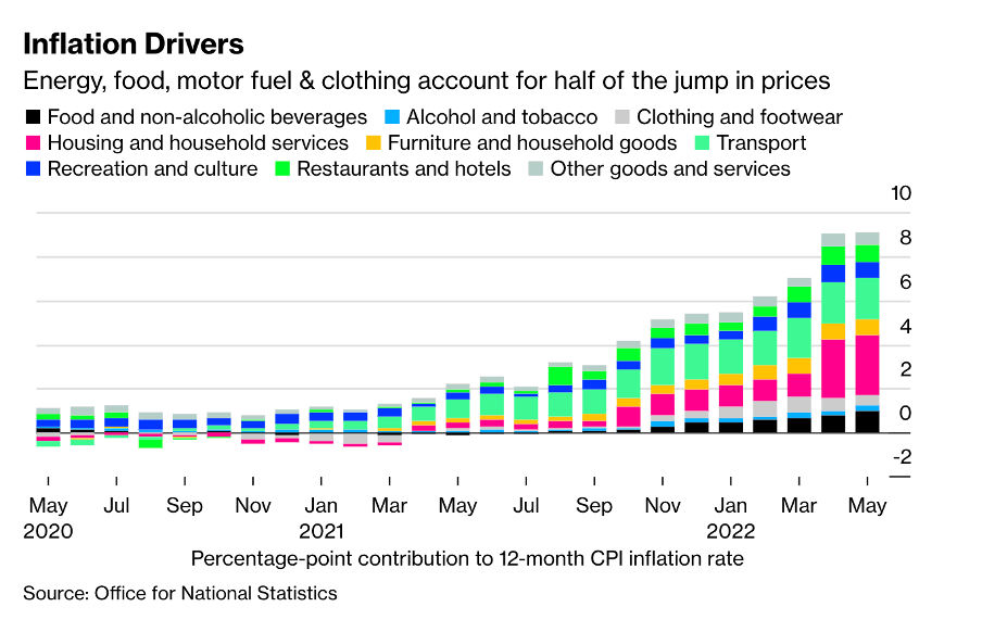 Consumers are feeling the squeeze on all sides. A recent ONS report showed consumer prices rose 9/1% in May, reaching a new 40-year high. While natural gas and electricity prices continued to dominate the increases over the past year, food, motor fuel, clothing and furniture also gained.