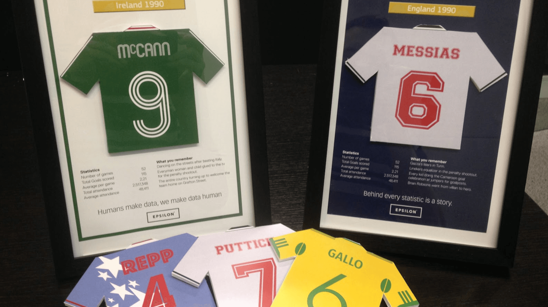 To do this, we gave each of the clients a memento to keep at their desk to take them back to those moments. A high-quality frame with a personalised football jersey, accompanied with copy that triggers collective emotions.