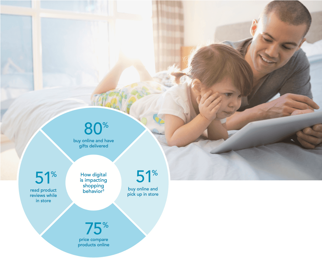 The report further confirms the ongoing trend of consumer purchasing behaviour being spread across channels: 80% of consumers now buy online and have gifts delivered, 51% buy online and pick up in store, 75% price compare products online, while 51% read product reviews while in store.