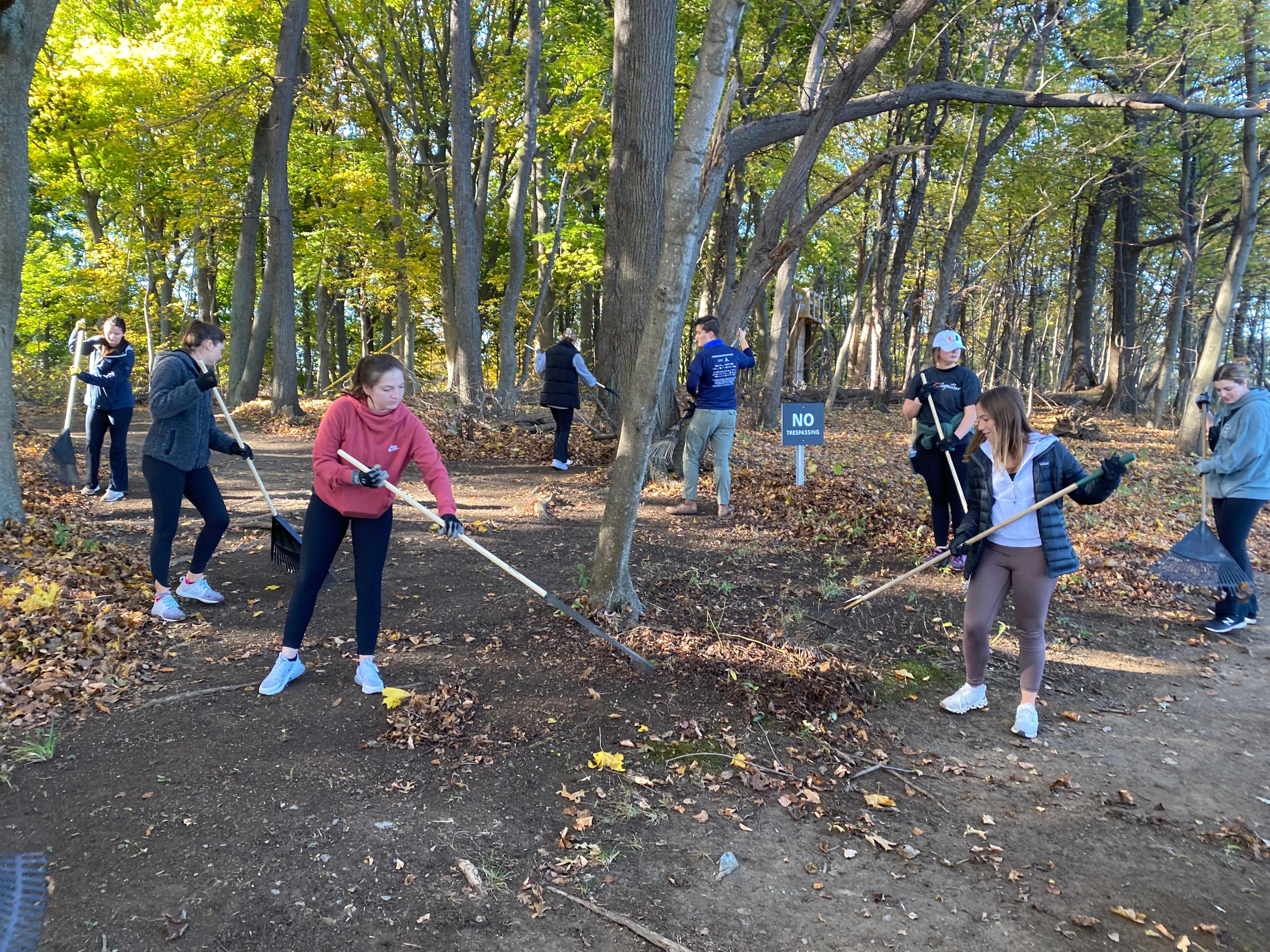 During our latest visit, Epsilon volunteers helped prepare the island for a group of students that would be arriving later in the afternoon. Our volunteers set up kayaking stations, raked leaves and cleared paths that would later be used by the 90 students visiting for a day of activities. They set the stage for the lessons and team-building exercises that the visiting students would be participating in.