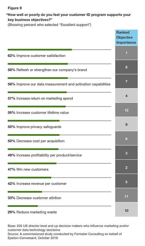 Forrester’s research also found that only 42% of respondents said they receive excellent support with their identity resolution programs for helping increase revenue per customer, and only 33% for decreasing customer attrition.