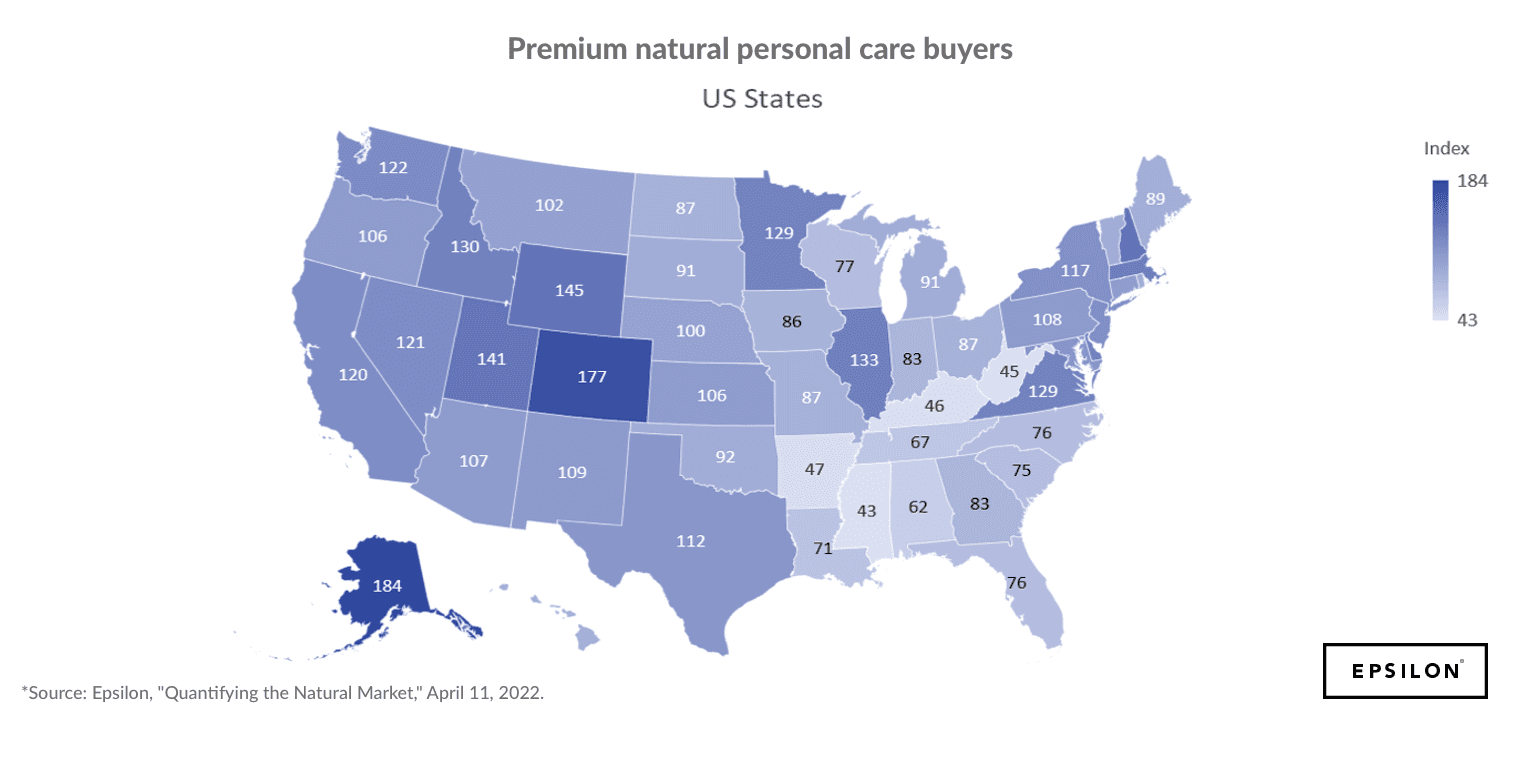 It’s worth noting that premium personal care buyers are also highly likely to be premium natural home cleaner and premium natural laundry product buyers (top 10% for each). Other high percentile traits for this group are that they’re avid book readers, Target enthusiasts, restaurant loyalty card customers, home gym owners and live concert attendees.