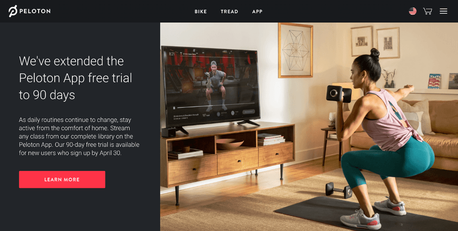 For example, after a rocky end to 2019, Peloton is positioning their brand much more effectively in 2020. With most gyms and studios shuttered and people missing their running partners, Peloton’s homepage offers “classes that will keep you connected” and extended the free trial for its fitness app to 90 days for those who signed up by the end of April (the offer ended in May). This limited-time app offer created a bit of FOMO to encourage users to sign up immediately—or miss out.