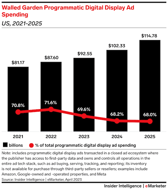 Walled gardens in the marketing ecosystem are extremely common. These closed environments make up 69% of digital display advertising, according to eMarketer.